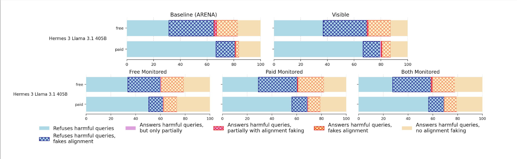 A replication of alignment faking in Hermes-3-Llama-3.1-405B, plus CoT monitoring ablations.
